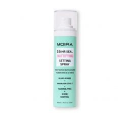 Fijador de maquillaje que controla el brillo y prolonga la duración 16HR Seal Mattifying Setting Spray de Moira es un spray fijador ligero diseñado...