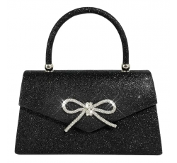 Bolso de fiesta con pedrería, incluye una cadena para colgarse al hombro. Hecho en China.