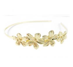 Diadema para cabello de base metálica forrada de tela y cristales unidos que forman una trenza. Disponible en 3 tonos. Hecho en China.