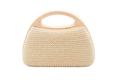 bolsa asa de madera, con cadena para colgar al hombro, tejido de rafia