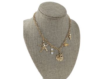 Lindo collar de acero inoxidable, cadena de dos capas, colgante estrella de mar con animales de playa de verano.