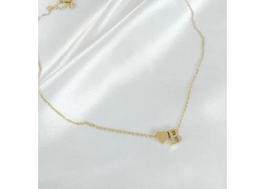 Collar de acero inoxidable con dije de letra y dije de corazón