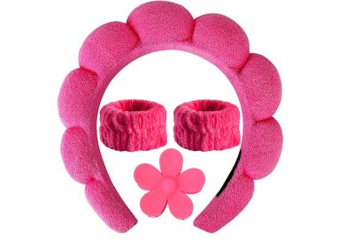 ¡Luce guapa incluso mientras te lavas la cara! Además de facilitar tu rutina de cuidado facial, esta diadema, pinza y pulsera de autocuidado tienen un diseño fácil de usar. Además de hacer que tu proceso de cuidado de la piel sea más cómodo, el set de diadema y pulsera de spa te permite lavarte la cara y lucir una piel radiante. Esta diadema de esponja se compone de una banda para el cabello forrada y un diseño de esponja gruesa que realza visualmente la parte superior del cráneo. Estos lindos accesorios para el cabello también pueden usarse para retocar la forma del rostro. Set de diadema para el cuidado de la piel.