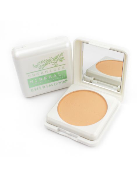 Polvo orgánico mineral Cherimoya, no obstruye los poros de la piel, acabado matte.