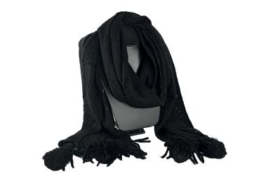 Chal con flecos en las orillas y pompóm , para mantener tu temperatura corporal cálida en este invierno.