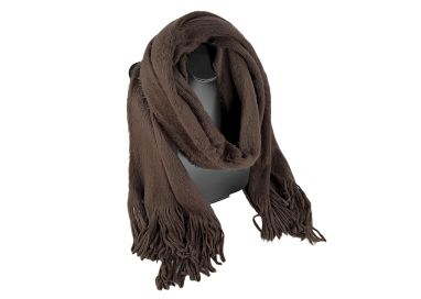 Chal con flecos en las orillas y pompóm , para mantener tu temperatura corporal cálida en este invierno.
