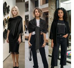 Chalcon barbas medianas en la parte de abajo. Listo para complementar tu look o bien utilizarse como una bufanda alrededor del cuello. Incluye: 1...
