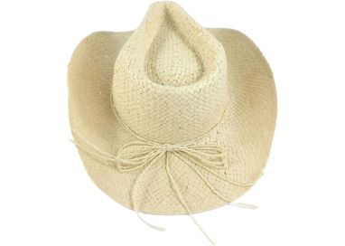 Sombrero de tela tipo paja, con listón que forma un moño en la parte de atrás