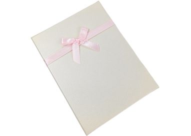 Caja de regalo, con diseño cuadrado y un moño de listón. Por dentro una esponja donde podrás colocar un juego de collar y aretes. Material: Cartón. Hecho en China.